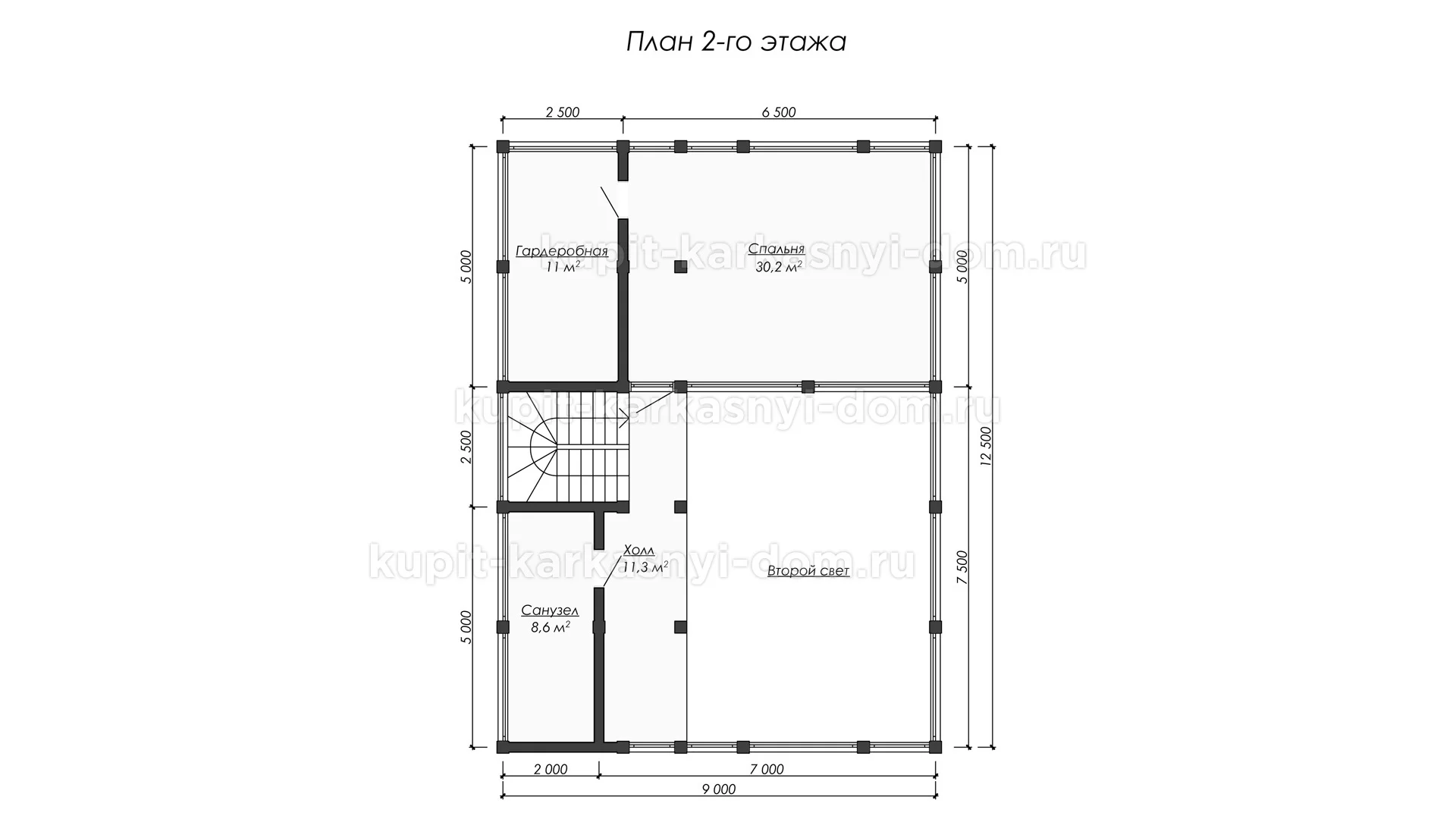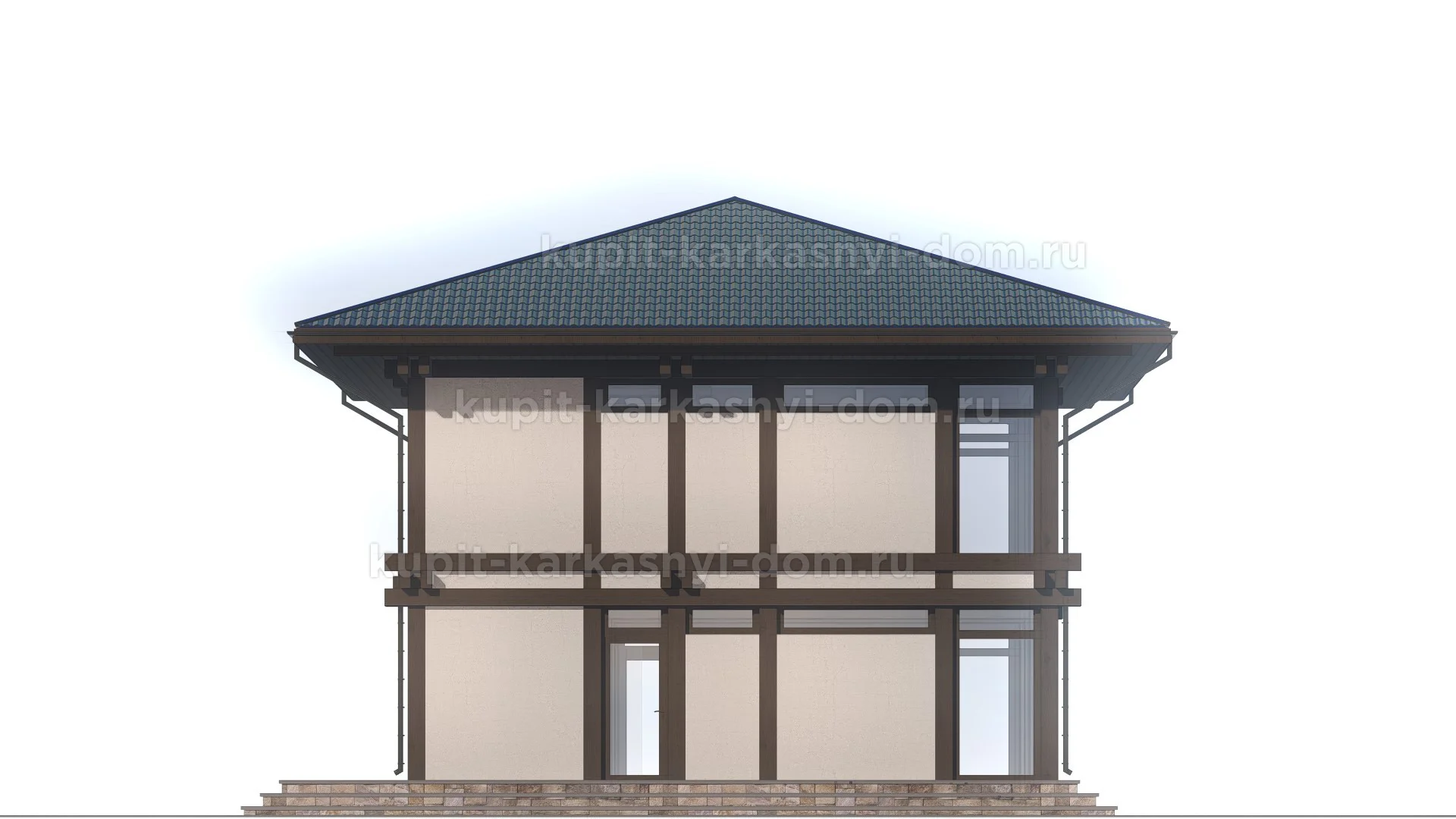Проект двухэтажного фахверкового дома 16.15 на 10.8 метров, площадью 226.5 м2, c вальмовой крышей, террасой, 2 входами, топочной.